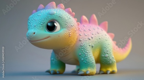 Obraz premium Cute, colorful, cartoonish, digital rendering of a baby lizard-like creature