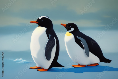 © Aleksandr, Obraz premium Cute colorful magic penguin, cartoon style painting. Generative ai art illustration