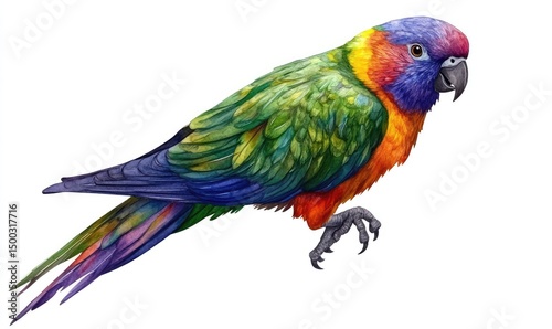© Tunsale, Obraz premium Cute Colorful Parrot Watercolor Illustration. AI generated illustration.