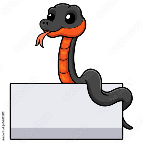 Fototapeta premium Cute copperbelly water snake cartoon with blank sign