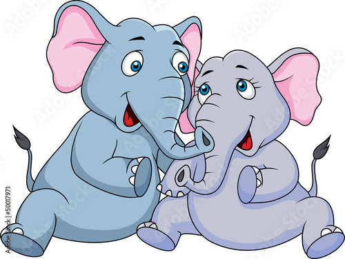 © tigatelu, Fototapeta premium Cute couple elephant cartoon