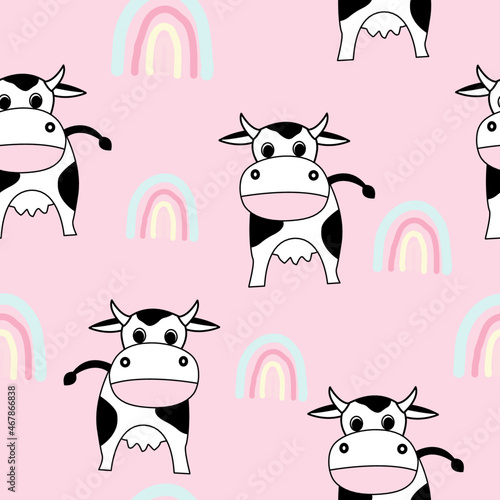Obraz premium Cute cows seamless pattern vector, design for world milk day, kids,...
