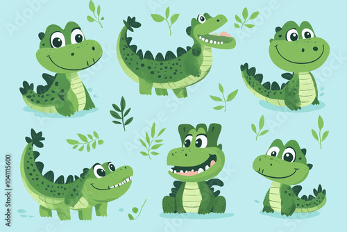 © Jiranun, Fototapeta premium Cute crocodile cartoon vector set.