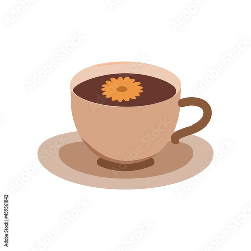 Obraz premium Cute cup of tea with a flower in a mug. Flat illustration