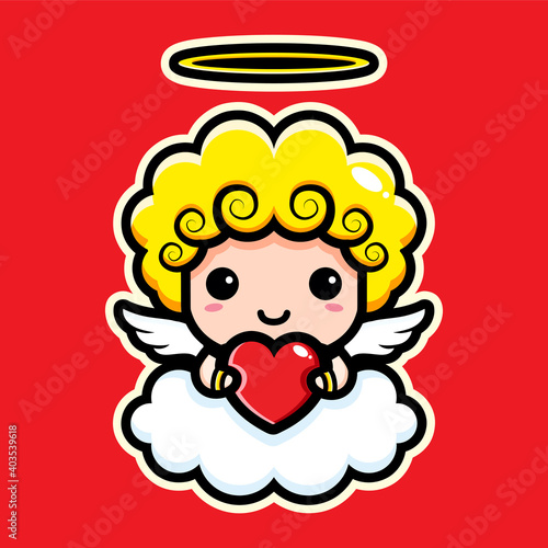 © Wantrisna Vektor, Fototapeta premium Cute cupid character designs hugging hearts