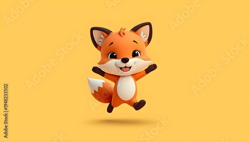 © Mathi, Obraz premium Cute 3D Cartoon Fox Jumping Colorful Kids Illustration