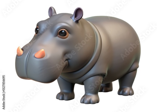 © Arman, Naklejka premium Cute 3D Cartoon Hippo with Exaggerated Features and Friendly Expression