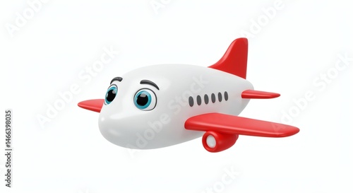 © DemiourgosAI, Fototapeta premium cute 3d cartoon white and red airplane on white background