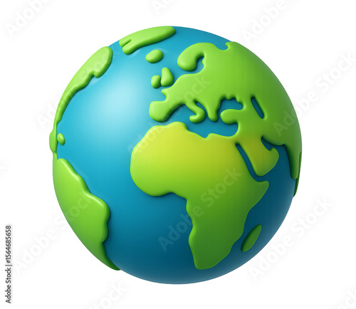 Naklejka premium Cute 3D Green and Blue Earth Icon, Eco Friendly Planet Concept