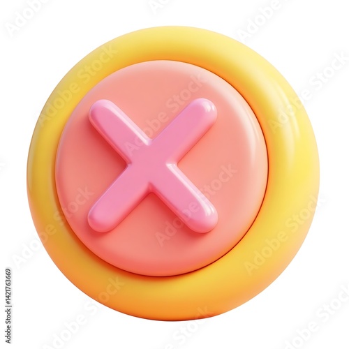 © NeoDesign Hub, Obraz premium Cute 3D pink X button on yellow background