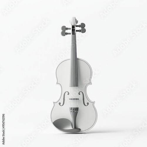 © Kopgz-41, Fototapeta premium Cute 3D Violin: Pastel White & Silver Minimalist Design