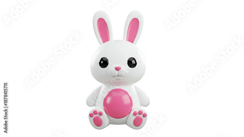 © nurul, Fototapeta premium Cute 3D White Bunny with Pink Accents