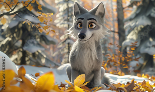 © Aris, Fototapeta premium Cute 3d wolf lizard with big eyes in nature