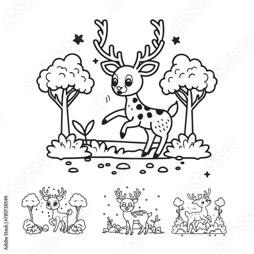 © Morsalin, Fototapeta premium Cute deer cartoon coloring page illustration vector outline For kid's coloring book
