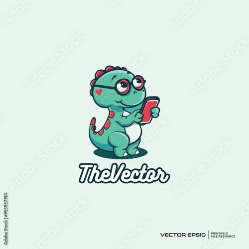 Obraz premium Cute dino holding gift logo, vector, mascot, character, cartoon, illustration, eps10