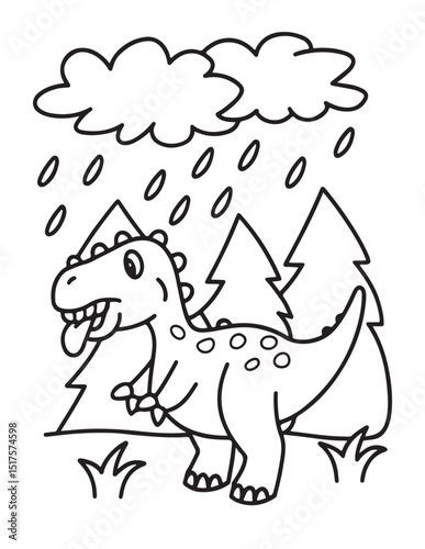 Fototapeta premium Cute dinosaur coloring book, cute dinosaur coloring page, line art, victor, illustration, black-white, dinosaur, coloring book, coloring pages, bold & easy, dinosaur coloring book, dinosaur coloring