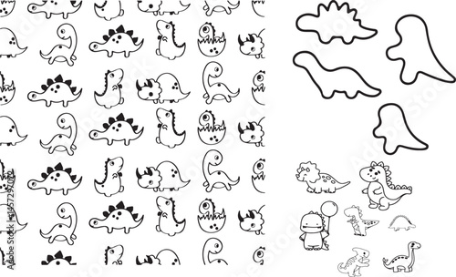 © Mishor, Naklejka premium cute dinosaur, dinosaur clipart, baby dinosaur, kawaii dinosaur, dinosaur illustration, cartoon dinosaur, dinosaur drawing, kids dinosaur, dinosaur doodle, dinosaur character, dinosaur pattern, dinosa