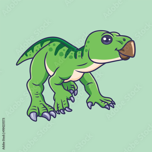 © Fuadhasansy, Fototapeta premium Cute dinosaur iguanodon cartoon character vector Illustration.