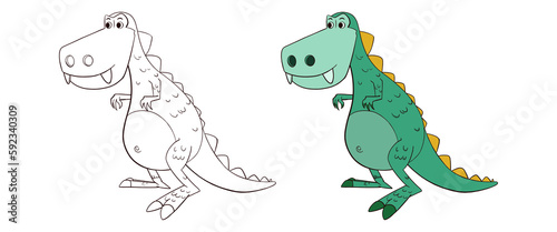 Fototapeta premium Cute Dinosaur illustration and line drawing