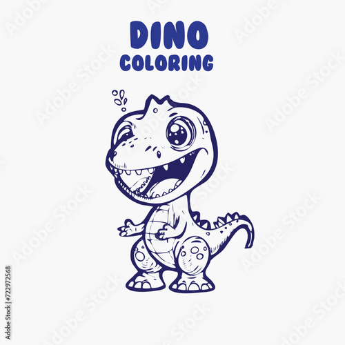 © Ari, Fototapeta premium Cute dinosaur of tyrannosaurus cartoon characters vector illustration. For kids coloring book. line art for coloring page