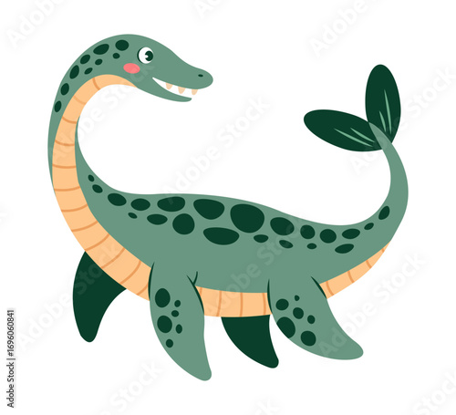 © Tetiana, Naklejka premium Cute dinosaur plesiosaurus isolated on a white background. Vector illustration.