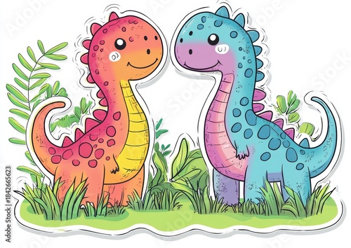© Tanish, Naklejka premium Cute Dinosaur Sticker Set in Pastel Colors