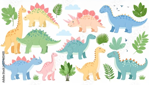 © Gurih, Fototapeta premium Cute dinosaurs and plants (1)