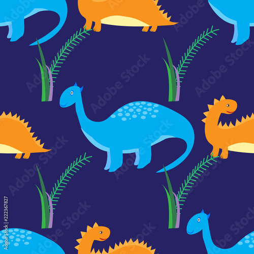 © glu_51, Obraz premium Cute dinosaurs seamless pattern. Vector background with cartoon dinosaurs.