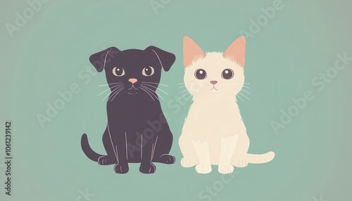 © AiExpert, Obraz premium Cute Dog and Cat Sitting Together on Pastel Background