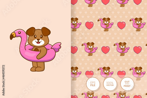 © Turn, Fototapeta premium Cute dog cartoon character. seamless pattern background.