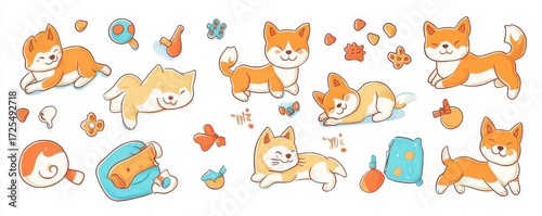 © herjunart, Fototapeta premium Cute Dog Cartoon Pattern Orange and Yellow Puppies on White