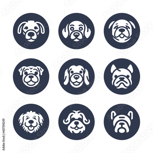 © Oksana_Latysheva, Fototapeta premium Cute Dog head vector icon set.