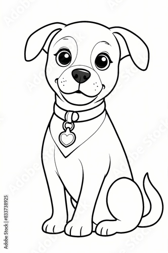 Fototapeta premium Cute dog kids coloring page book, black and white line art