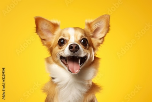 Obraz premium cute dog on yellow background, AI Generated