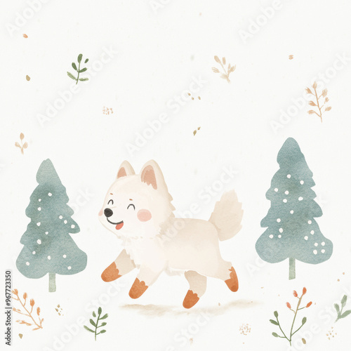 © warunthorn, Fototapeta premium Cute Dog Running in Forest.