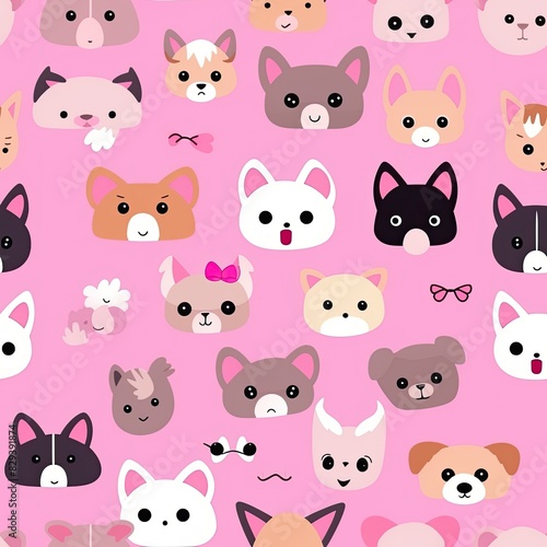 Obraz premium Cute dogs head seamless patterns, texture, background.
