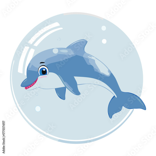 Fototapeta premium Cute Dolphin Animal Swimming Inside a Large Clear Water Bubble: A Whimsical Underwater Concept Illustration