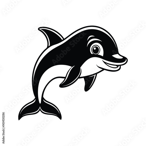 Fototapeta premium Cute dolphin character silhouette isolated on white background