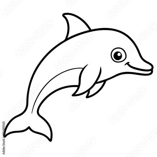Fototapeta premium Cute Dolphin Silhouette Vector Illustration on White Background