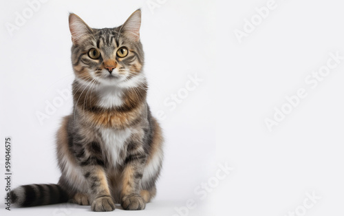© neng kokom komala, Fototapeta premium cute domestic cat portrait. white gradient background. with copy space.