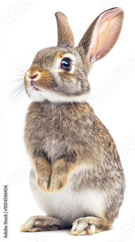 © Drew, Fototapeta premium Cute Domestic Rabbit Sitting Upright with Expressive Eyes
