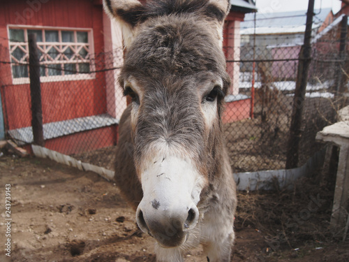 © Viktor Kulikov, Fototapeta premium cute donkey in a farming village