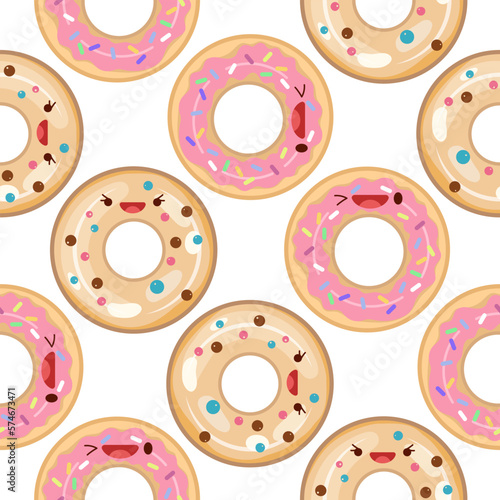 Fototapeta premium Cute donuts seamless pattern. Vector illustration. Food icon concept. Flat cartoon style.