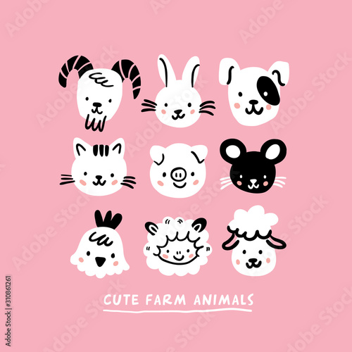 Naklejka premium cute doodle cartoon farm animals scandinavian