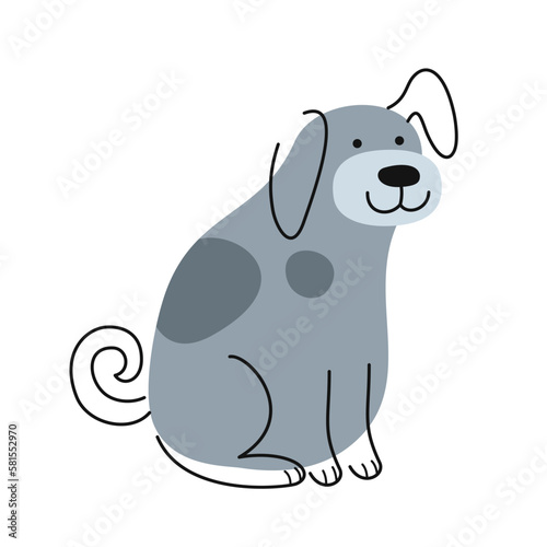 Fototapeta premium Cute Doodle Dog. Colorful sticker or icon with gray funny puppy. Smiling pet...