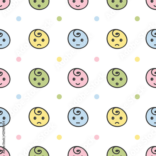 Fototapeta premium Cute doodle, hand drawn smiley faces, emoji seamless pattern background.