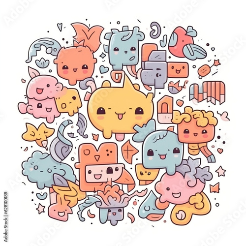 Obraz premium cute doodle puzzles cartoon style, illustrator