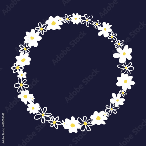 Fototapeta premium Cute doodled daisies vector tendril circle. Floral wreath design element.