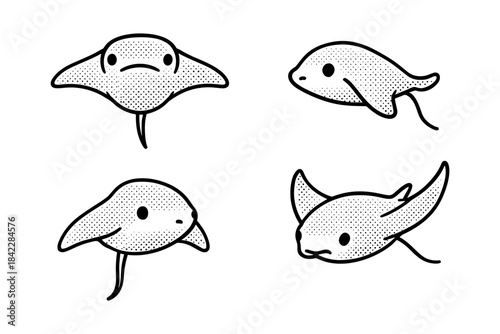 © 4Max, Fototapeta premium Cute dot art stingray set with diverse expressions and simple design