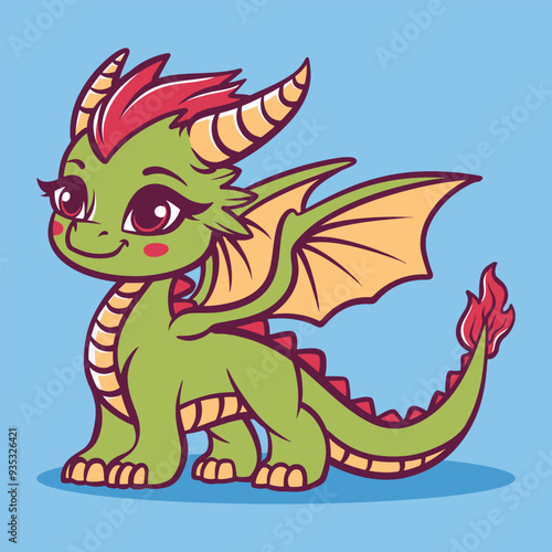 Fototapeta premium Cute Dragon 2D cartoon character clipart